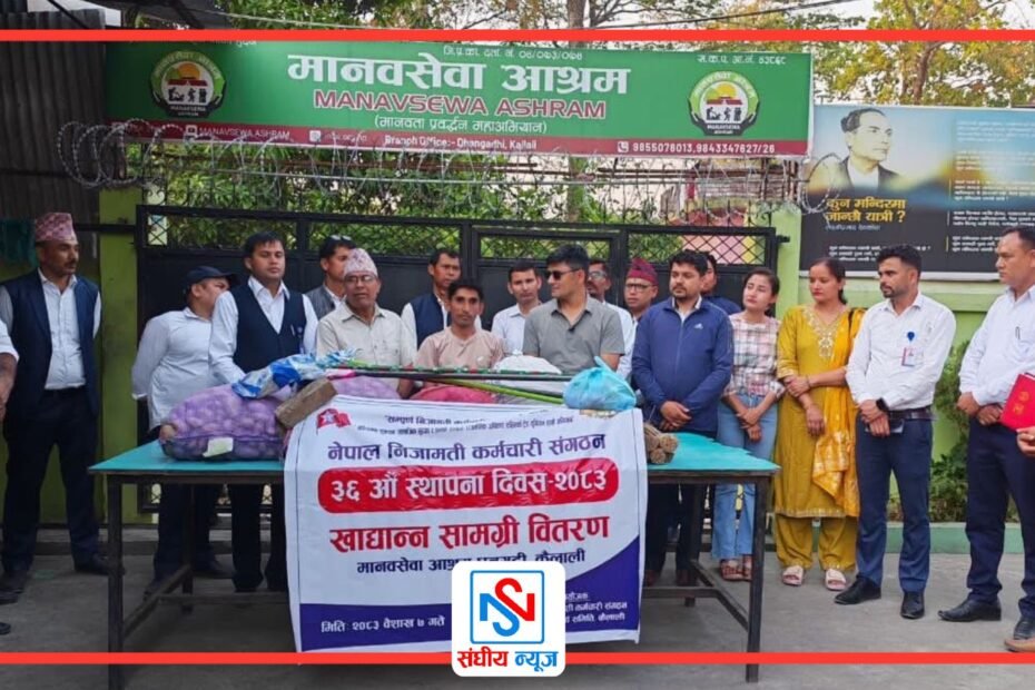 नेपाल निजामती कर्मचारी संगठनको ३६ औँ स्थापना दिवसको अवसरमा जिल्ला कार्यसमिति कैलालीले मानवसेवा आश्रम धनगढीमा खाद्यान्न सहयोग गरेको छ।